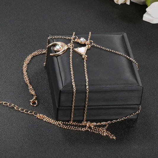 14K Rose Gold Plating Opal Crescent & Triangular Statement Necklace
