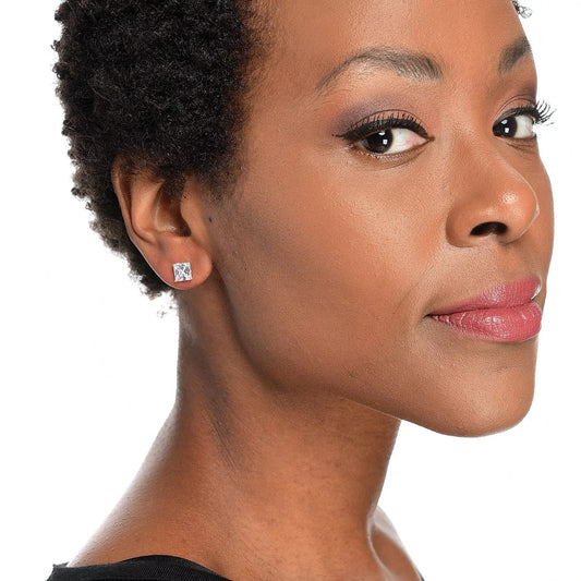 14K White Gold Square Basket Setting Simulated Diamond Stud Earrings