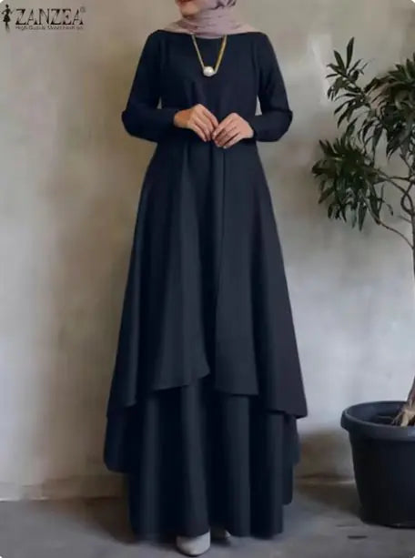 ZANZEA Women's Long Sleeve Abaya Maxi Dress - Casual Loose Fit Kaftan for Eid, Dubai, and Turkey