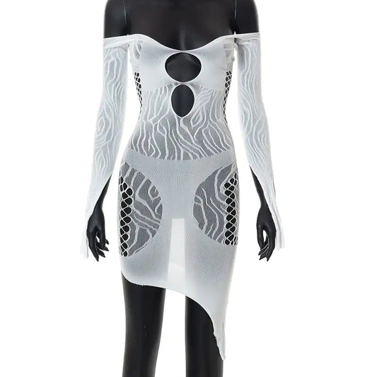 In The Spotlight Cutout Off Shoulder Mesh Mini Dress (various colors)