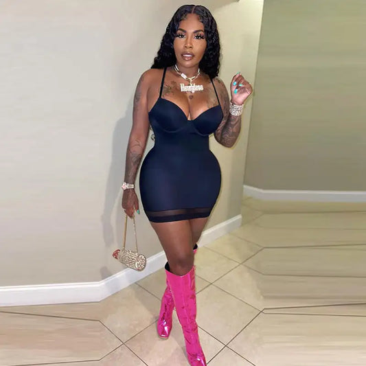 Can't Be Just Friends Low-Cut Mesh Panel Mini Dress (various colors)
