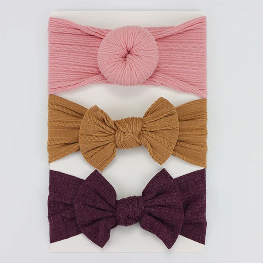 3Pcs/Lot Knit Baby Headband Bow Set (various colors)