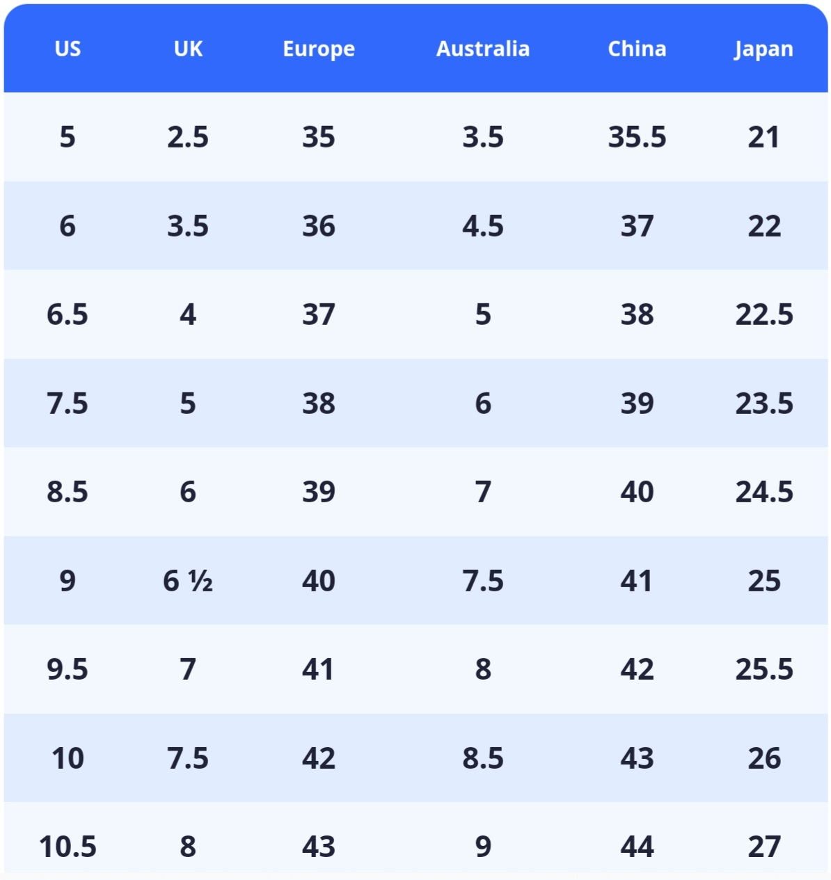 See pix of sizing chart.